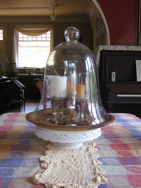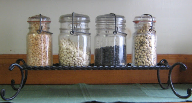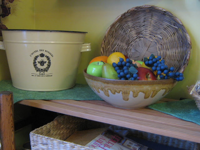 The inspirations for my Autumnal mood began with applying the color of a deep forest green on the hutch in our kitchen. I then layered textures of wrought iron and pewter and glass.