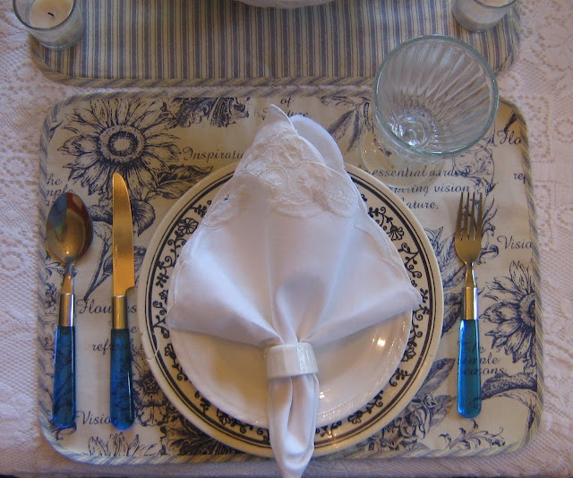 To complement the pattern of the pitcher, I chose a placemat I love which actually the set belongs to my daughter. I also used