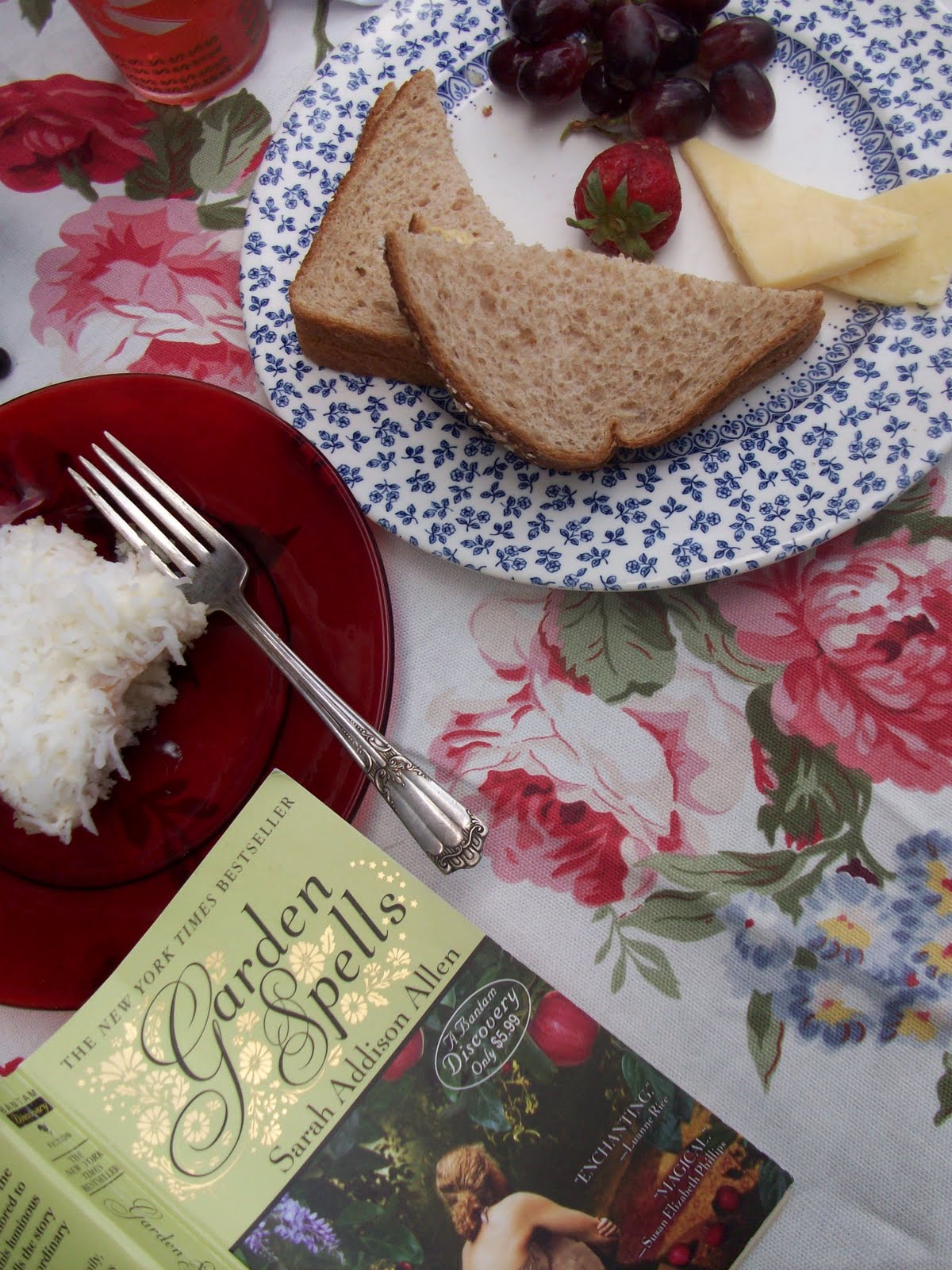 Spring has been marvelously beautiful this year. After our mild winter, the spring flowers are beginning to arrive in abundance. With the balmy, fragrant flowered air today, I decided to treat myself to a lovely alfresco lunch with a special treat – coconut cake.