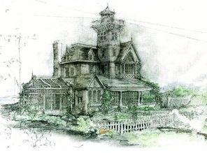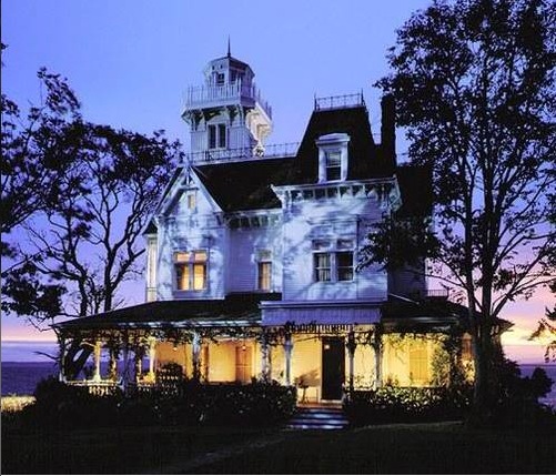 I am also fascinated by the exterior of the house – the mixture of Victorian and Gothic elements in all their detail. The fenced herb garden off the side porch facing the ocean is quite an inviting site. I’d love to walk through to pick herbs from this garden and to sit beneath the pergola gazing into the tranquil waters.