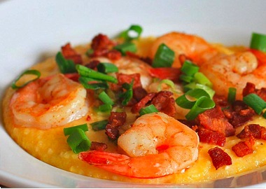 A very southern dish finds its roots in American indian foods. Creamy, white grits are traditionally eaten for breakfast with eggs, bacon/ham and biscuits. Grits can be made from ground corn or hominy. In our rural county, there are a couple restored grist mills where corn is ground for meal and for grits.