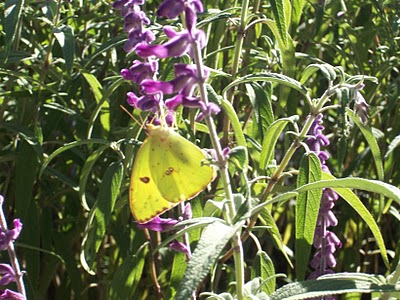 blossoms swaying in the breeze and the yellow butterflies the attract.